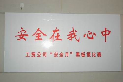 南通工貿(mào)公司在安全月活動中,組織各集約化管理片區(qū)企業(yè)舉辦黑板報比賽。比賽以“綜合治理、保障平安”為宗旨,體現(xiàn)了“安全在我心中”和“以人為本、關(guān)愛生命”的崇高主題,具有內(nèi)容健康、創(chuàng)意新穎的特點(diǎn),頗受參觀者好評。