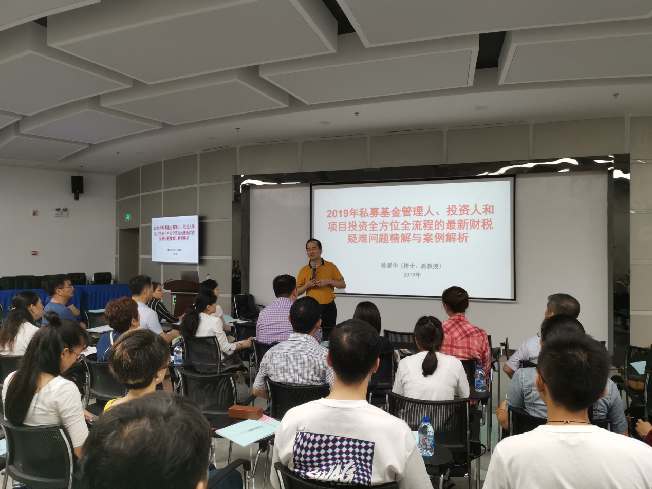 培訓(xùn)邀請了廈門大學會計學博士、副教授、碩士生導(dǎo)師陳愛華老師進行授課,市相關(guān)政府部門、單位、機構(gòu)分管領(lǐng)導(dǎo)、財務(wù)人員等80余人共同參與。 陳愛華老師擅長從會計、稅務(wù)和經(jīng)濟法律視角綜合看待經(jīng)濟業(yè)務(wù),對金融行業(yè)、類金融行業(yè)等的會計、稅法及經(jīng)濟相關(guān)法律的銜接與融合有較深的理解。本次講座重點介紹了近年新出臺的財稅相關(guān)政策、法規(guī),解析了2019年私募基金涉及的最新熱點財稅問題和會計核算、納稅申報中涉及的疑難問題,并分享了應(yīng)對措施,對開展私募基金財稅工作很有借鑒意義。