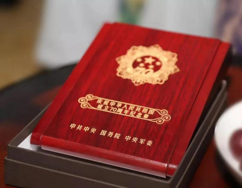 為慶祝新中國成立70周年,南通國融資產(chǎn)運營有限公司根據(jù)產(chǎn)控集團的統(tǒng)一安排,從9月19日開始,由工會主席孫美峰帶隊走訪慰問新中國成立之前參加革命工作、目前仍然健在的國融資產(chǎn)離休老干部。 本次走訪慰問活動恰逢祖國70周年喜慶,中共中央、國務(wù)院、中央軍委為老干部們制作了“慶祝中華人民共和國成立70周年”特制紀念章。紀念章使用銅胎鍍金材質(zhì),通徑為50毫米,主要元素為五星、“70”飄帶、團錦結(jié)、如意祥云和光芒,主色調(diào)為紅色和金色。“70”飄帶象征中華人民共和國70年奮斗歷程。章體外環(huán)以如意祥云、光芒構(gòu)成,象征人民對美好生活的向往,同時表達隆重慶祝中華人民共和國生日,禮贊國家富強、民族振興、人民幸福的輝煌成就,以及在70年輝煌奮斗成就的基礎(chǔ)上不忘初心、繼續(xù)前進的堅定決心。每枚紀念章內(nèi)側(cè)均打印編號,每一個編號對應(yīng)每一位離休老干部的名字。