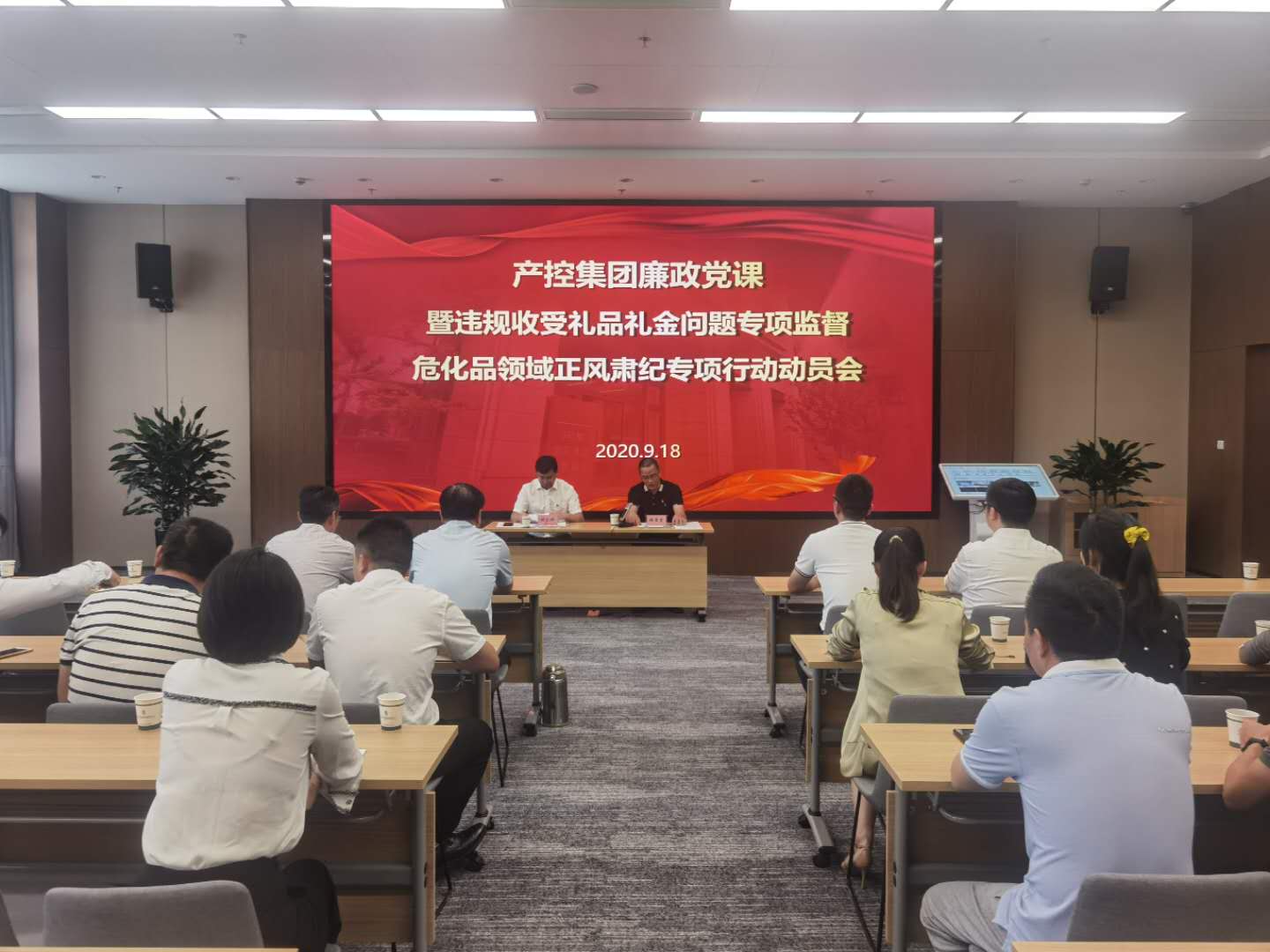 支部全體黨員實地參觀了激濁揚清、正本清源、上善若水、永立潮頭四個主展廳,對黨的十八大以來查處的黨風廉政建設典型案例,南通市近年來反腐歷程、取得的反腐成果和發(fā)生在身邊的貪污腐敗案例進行了全面了解。 參觀結束后,集團在廉政教育基地,現(xiàn)場召開廉政黨課暨違規(guī)收受禮品禮金問題專項監(jiān)督、危化品領域正風肅紀專項行動動員會。