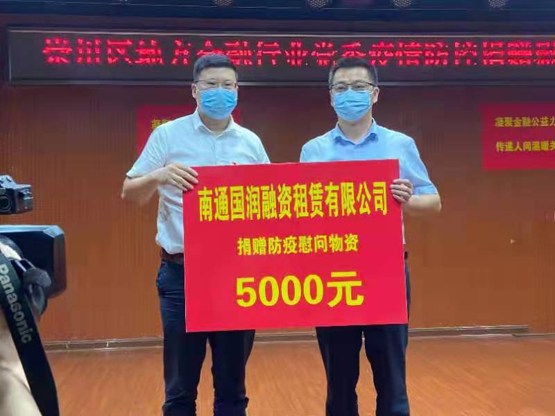 國潤(rùn)租賃作為南通市融資租賃行業(yè)的領(lǐng)軍人物,第一時(shí)間響應(yīng),黨支部副書記吳小兵同志代表公司向抗疫一線社區(qū)捐贈(zèng)5000元防疫物資,助力于街道及社區(qū)的疫情防控工作。