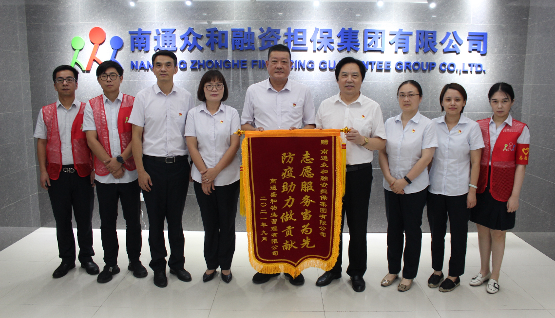 9月6日下午,南通盛和物業(yè)有限公司黨支部書記兼總經(jīng)理劉曉軍、副總經(jīng)理高曉蓉一行向眾和擔(dān)保送來了印有“志愿服務(wù)當(dāng)為先 防疫助力做貢獻(xiàn)”字樣的錦旗,誠摯感謝眾和擔(dān)保在盛和物業(yè)駐啟瑞廣場(chǎng)防疫工作人手緊張的關(guān)鍵時(shí)期,迅速組建了一支40名青年黨員、業(yè)務(wù)骨干構(gòu)成的“兩在兩同 同心抗疫”志愿者服務(wù)隊(duì)。他們利用工作之余,起早貪黑,放棄午休,不辭辛苦,堅(jiān)守在防疫一線。從測(cè)溫驗(yàn)碼到秩序維護(hù),從交通疏導(dǎo)到卡口管理,哪里需要就到哪里,為啟瑞物業(yè)防疫工作作出了積極貢獻(xiàn),也得到了啟瑞廣場(chǎng)業(yè)主的點(diǎn)贊,充分彰顯了國(guó)有企業(yè)責(zé)任擔(dān)當(dāng)。