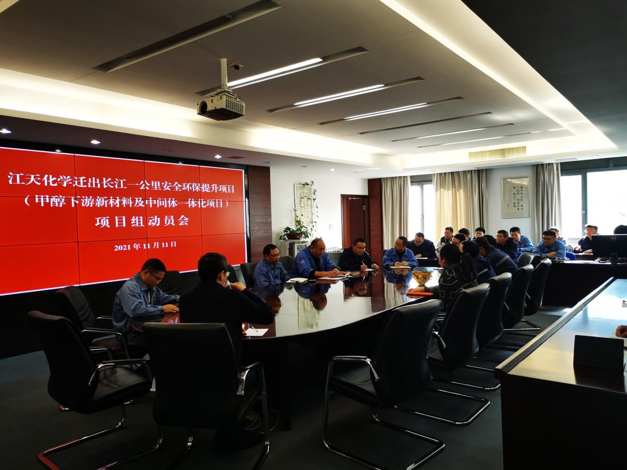 為保障公司搬遷項目有計劃、高質(zhì)量落地實施,11月11日下午,江天化學(xué)召開遷出長江一公里安全環(huán)保提升項目(甲醇下游新材料及中間體一體化項目)動員會,公司工程項目組全體成員參加會議。