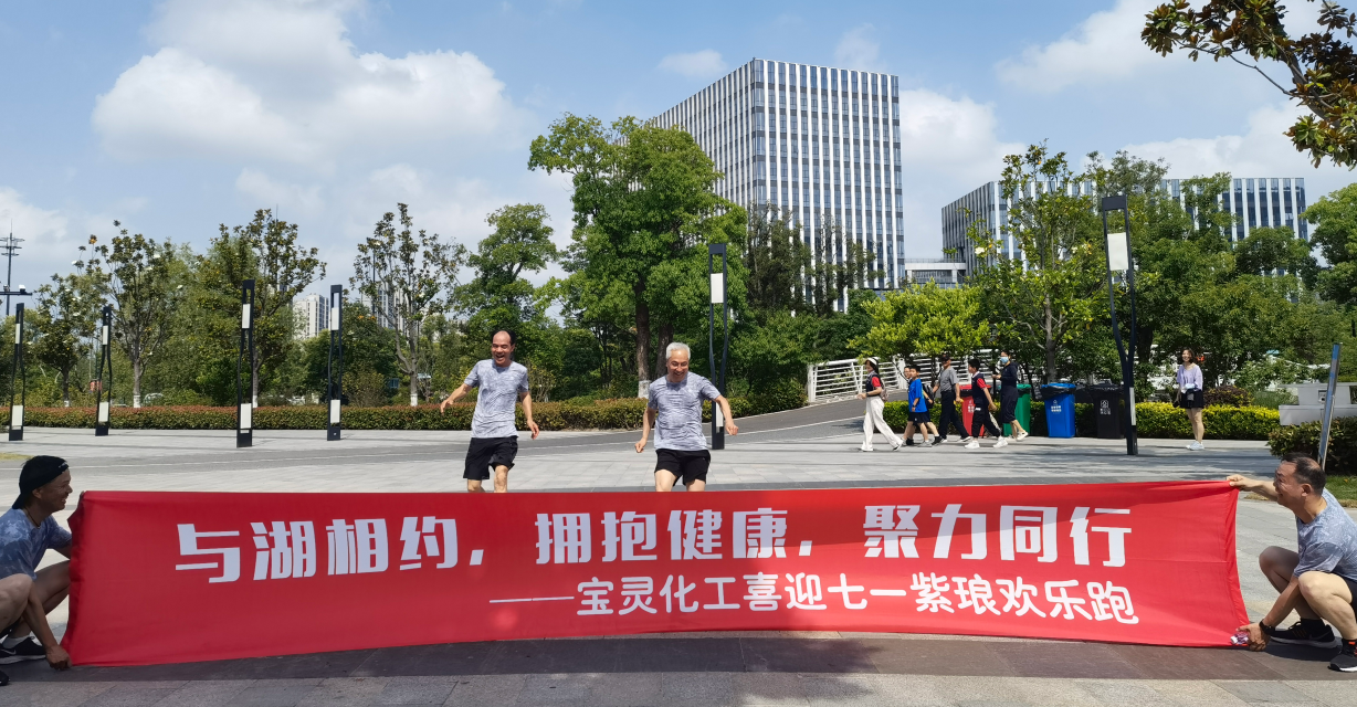 為積極貫徹國家體育總局倡導的行走運動,推廣健身理念,養(yǎng)成積極健康、文明環(huán)保的生活方式,豐富員工的業(yè)余生活,營造企業(yè)積極向上的文化氛圍,江蘇寶靈化工股份有限公司于6月11日舉辦了“與湖相約,擁抱健康,聚力同行”喜迎七一紫瑯歡樂跑活動。此次活動由公司工會主辦,活動主題“低碳 綠色 健康”,活動口號“快樂運動 與你同行”,活動地點南通市中創(chuàng)區(qū)紫瑯湖公園。