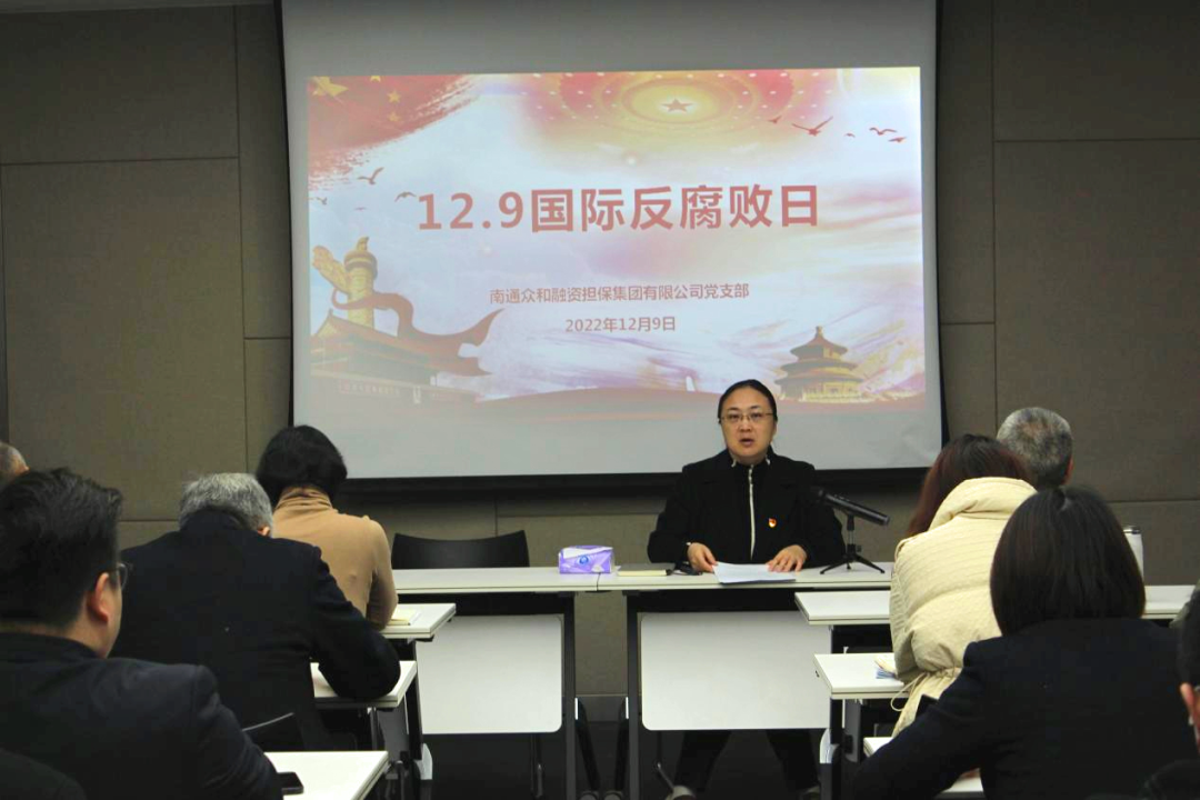 近期,眾和擔保黨支部圍繞國際反腐敗日廉潔教育主題開展黨日活動,活動由公司黨支部副書記、副總經(jīng)理張紅同志主持,黨支部委員、副總經(jīng)理劉志堅同志上廉政黨課,公司中層以上干部及全體黨員參加活動。