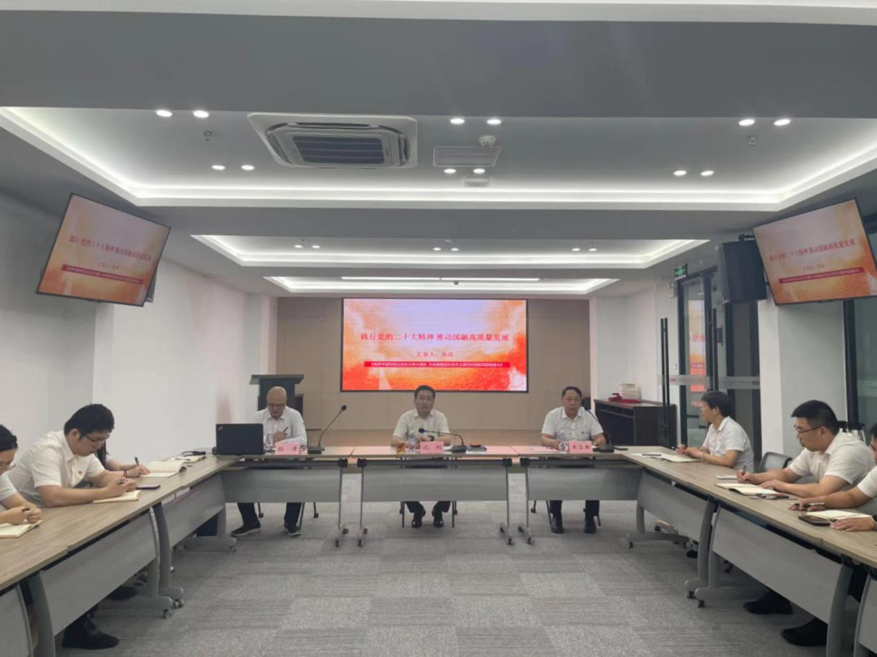 他指出,要抓實抓牢黨員干部的政治理論學(xué)習(xí),建設(shè)學(xué)習(xí)型黨組織。同時,要加強公司內(nèi)部督查力度,建立內(nèi)審機制,通過經(jīng)常性、深入性的監(jiān)督檢查,確保各項工作任務(wù)不折不扣落到實處,加強黨建與經(jīng)營工作的融合,助推公司高質(zhì)量發(fā)展。 隨后,國融公司黨委委員、副總經(jīng)理孫濤以《踐行黨的二十大精神 推動國融高質(zhì)量發(fā)展》為題,帶領(lǐng)公司黨員一起學(xué)習(xí)黨的二十大報告精髓,結(jié)合公司實際,從三方面與大家分享自己學(xué)習(xí)黨的二十大精神的體會與收獲,積極引導(dǎo)黨員干部堅持學(xué)習(xí)、堅定信心、奮勇前行,攜手共譜國融公司新篇章。