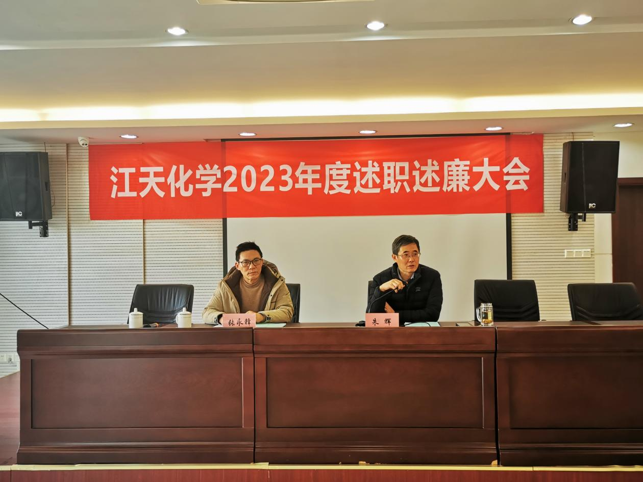 1月23日,江天化學(xué)組織召開中層干部年度述職述廉暨民主評議會(huì)議。公司董事長、總經(jīng)理朱輝出席會(huì)議,會(huì)議由公司黨支部書記、副總經(jīng)理張永鋒主持。