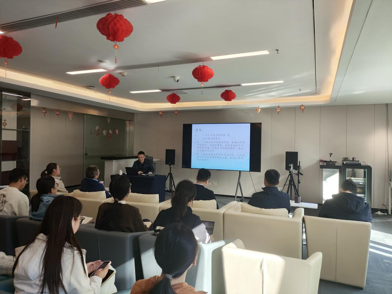 專題黨課上,朱皞書記圍繞“責任”開展解析,結(jié)合大量案例及歷史故事,闡述個人在工作、家庭等各種社會場景中應當遵守的責任原則,并開展了家教家風教育,向投管職工提出了“八要”、“五勿”、“六善”的工作履職要求,幫助大家提升履職盡責、廉潔從業(yè)的意識。