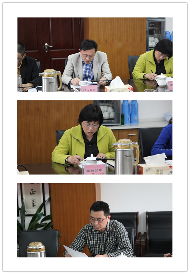 座談會上,產(chǎn)控集團(tuán)黨委副書記陸強(qiáng)新傳達(dá)了全市“兩學(xué)一做”學(xué)習(xí)教育座談會相關(guān)精神。江山股份、國融公司、直屬支部等3個(gè)黨組織的負(fù)責(zé)人結(jié)合工作實(shí)際,圍繞“兩學(xué)一做”學(xué)習(xí)教育工作打算進(jìn)行了表態(tài)發(fā)言。